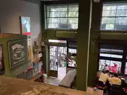 The overall atmosphere is vintage, and the two-story building offers impressive views from the second floor.