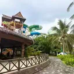 Tropical Paradise Water Park is the highlight of VinWonders Nha Trang, located on Hon Tre Island, surrounded by the sea and mountains, giving it a true paradise island vibe. Inside, you'll find giant slides that challenge both teens and adults, a Lazy River for relaxing floats, and a wave pool that's fun for the whole family. There's also a dedicated zone for young children, decorated in a bright and cheerful style, with a safety team on hand at all times.