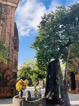 During the day, the temple's bricks shone even brighter in the strong sunlight, and in the evening, the cool breeze made it perfect for a long stay.