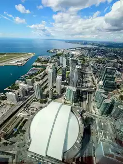 - Afternoon: After checking into your hotel, head to Toronto’s iconic landmark—the CN Tower. Take the elevator to the observation deck to enjoy panoramic views of Toronto and experience the city's vibrancy.
