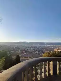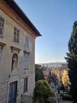 * walk up the stairs from the end of quai des états-unis near the beach (about 10–15 minutes uphill)