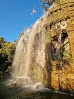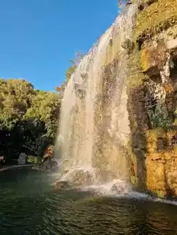 * the cascade is surrounded by lush greenery and stone paths — it’s cool and refreshing on a sunny day