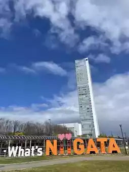 In Niigata, we first stopped off at the Baka-uke Observatory. From the observation deck, we could see the whole of Niigata city and the sea, and the view was especially beautiful at dusk. And it was free! The contrast between the sparkling lights of the cityscape and the vast sea was so striking that I couldn't help but stare at it for a long time. After that, we went to Minato Marche Pia and enjoyed fresh seafood and local specialties. There were many food booths, and everything was fresh and delicious, and we could feel the warmth of the local people. We were able to fully enjoy the sea and food of Niigata, and it was a fulfilling day.