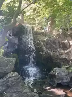 Another highlight is the impressive landscaping, with water flowing from a large stone waterfall approximately 3.8 meters high into the pond.