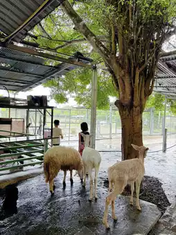 This place is both a cafe and a mini zoo. On the day we went, we went to the mini zoo. We took our kids to see the animals and feed the animals there. It was raining heavily on the day we went. But the walkway in the zoo has a roof all the way. We were still able to feed them. Some animals might have gone to hide from the rain or we might have been splashed by the rain a little.