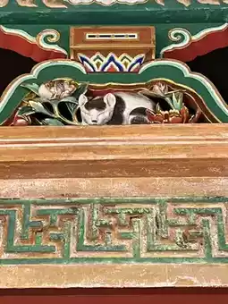 The Sleeping Cat is also a must-see, said to have been made by the master craftsman Hidari Jingorō, and is considered a symbol of a peaceful era. On the back of the cat is carved a sparrow, signifying that peace is maintained by the sleeping cat.