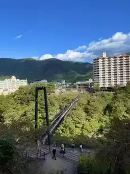 This approximately 140-meter-long pedestrian-only suspension bridge connects the southern part of Kinugawa Onsen Town with Tateiwa.