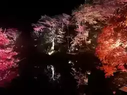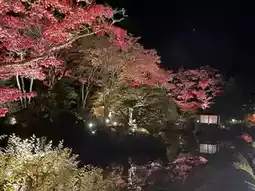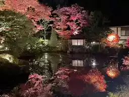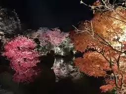 A garden centered around a large pond. The nighttime illumination is a highlight!