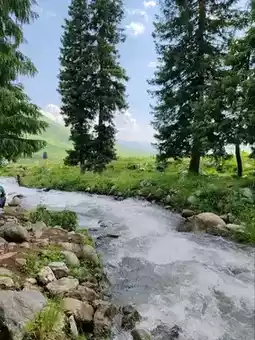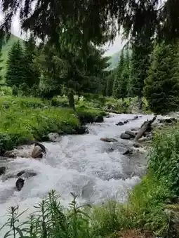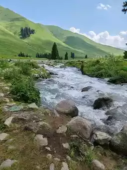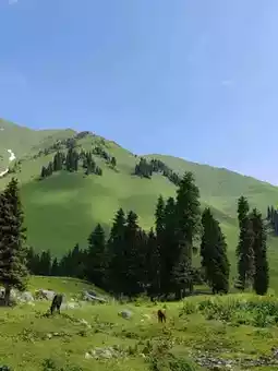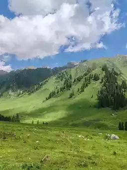 Nestled within Nilk County's Tangbula Scenic Area, the Mengteke Ancient Road unveils Xinjiang's wilderness grandeur. Rolling mountains cradle lush valley meadows, where towering pines stand sentinel beside sinuous rivers. Crystal streams carve through the valleys—shifting between gentle flows and rushing torrents—breathing life into this pristine landscape. Cotton-like clouds drift across washed-blue skies, framing vistas of serene vitality. From murmuring waters to horses grazing on emerald slopes, every detail whispers the ancient road’s timeless harmony.