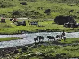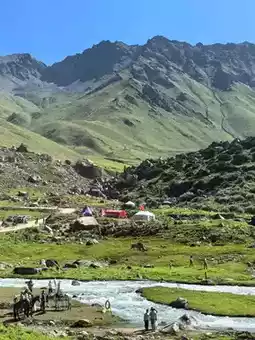 The beauty of the Mengket Ancient Trail lies in its status as a hidden passage through the Tianshan Mountains. Traveling or hiking through this canyon is like stepping into an ever-changing three-dimensional painting. Towering spruce forests, wildflowers dotting the meadows, secret green wilderness, meandering streams, and peculiar rock formations create a breathtaking scene. Yurts, tents βΊ, horses galloping across alpine grasslands, wading through streams, and adorable flocks of sheep π complete the picture. The winding and bumpy mountain roads, along with the vanishing phone signals, allow visitors to fully immerse themselves in the tranquil solitude of this sparsely populated, scenic paradise.