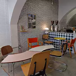 เป็นคาเฟ่สองชั้น ชั้นแรกให้ฟิลเหมือนนั่งทำงานในสวน
