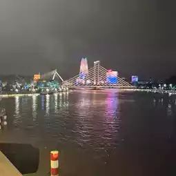 • By Day: Sleek cable-stayed beauty spanning three rivers.