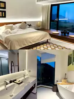 •Each room has a separate bathroom, strong privacy, equipped with bathtub🛁, electric curtains, smart toilet🚽, etc., and there are large floor-to-ceiling windows, you can see the sunrise🌄 in the morning🤫