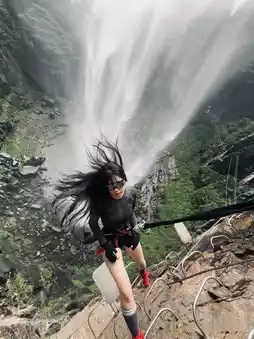 After climbing, you can take a photo with Xufu Rock Waterfall in front of Rainbow Pool, 📸 full of passion, 🫧 it will definitely have a place in your Moments