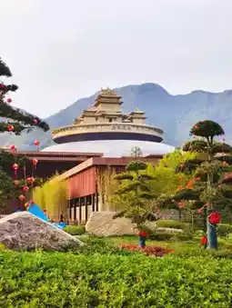 At the entrance to the scenic area (distribution center) is Maitreya Altar, a golden palace (temple) on top of a great dome. The altar's exterior lightning design received the 1st Prize of the China Lightning Award in 2022. The design reflects a blend of traditional Buddhist aesthetics and modern architectural innovation.