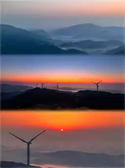 Morning: Watch the sunrise and sea of clouds on the Fuquan Mountain Windmill Highway