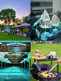 In early summer, lounge in an art hotel by Dongqian Lake, soaking in a private tub🛁 while watching the sunset paint the lake in golden-pink hues🌅. When the breeze blows, even your hair glimmers✨! With an infinity pool🏊🏻♀️, lawn tents🏕️, and a children's playground🛝, this is the ultimate summer getaway~