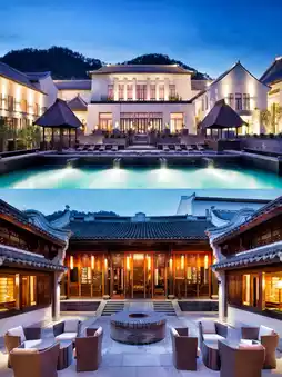 The hotel rooms feature single-story townhouse designs, with white walls and blue-gray tiles, lush bamboo groves outside the doors, and Chinese-style lighting—every detail exudes rich traditional Chinese aesthetics. Each room is meticulously designed to ensure comfort while offering guests the rare privilege of breathtaking natural views through the windows.