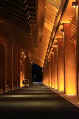 The conference center’s stunning architecture and play of light and shadow