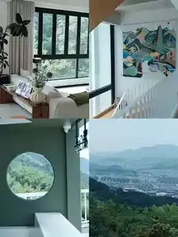 "By the Mountain, Gaze at the Mountain, Return to the Mountain, See the Mountain, Awake to the Mountain, Hide in the Mountain, Rest on the Mountain" – just the names alone are poetic! Each room features floor-to-ceiling windows 🪟, waking up to birdsong and opening the curtains to a soothing sea of green 💚. The stylish rustic wood design, paired with artistic decor, creates a clean and cozy space for instant relaxation.