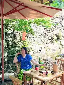 Stroll along the creek with a refreshing cold-brew tea 🍵 and chilled watermelon 🍉—absolute serenity!
