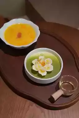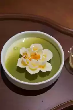 The pudding has a silky texture, drizzled with osmanthus honey,