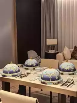 Step into the family room with your kids, and outside the floor-to-ceiling window is an outdoor pool shimmering like scattered silver. Children count the stone-carved little beasts on the corridor pillars while you brew a pot of sea-view tea, watching the flying eaves cut through the drifting clouds—the ink fragrance of Tianyi Pavilion and the lights of the Old Bund are all within a refreshing walk.