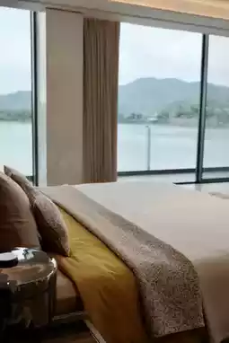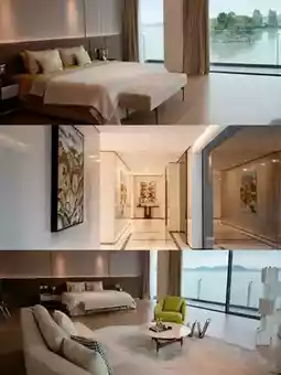 The first floor is the hotel’s public area, which can also be called an art gallery, with paintings worth millions right before your eyes, along with a restaurant, tea room, and infinity pool all available. The second floor has only 4 rooms, each offering a 270° lake view, allowing you to watch the most beautiful sunset over Dongqian Lake right from your room. Even the gym has a full lake view.