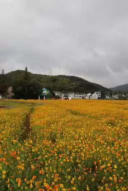 The flower sea here is indeed in full bloom, and it’s a sea of golden yellow, very picturesque. From what I know, it doesn’t seem to be called Gesang flowers but should be called sulfur cosmos or coreopsis. However, it doesn’t matter as long as the scenery here is beautiful enough.