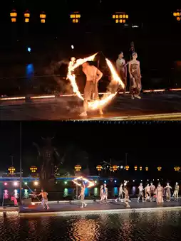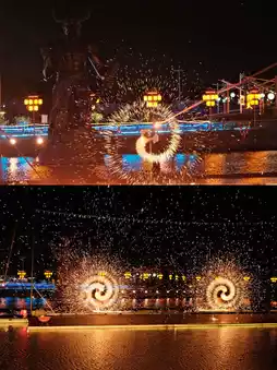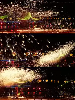 Intangible cultural heritage iron flower performance + waterfall fireworks show