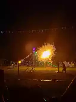 ✅ Atmosphere Enhancer — Fire Pots: Fire pots scattered throughout the park, their flickering flames make the whole night warm and mysterious, perfectly setting the mood.