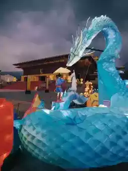 The twelve zodiac animals, flood dragon, nine-tailed fox, and opera lantern groups