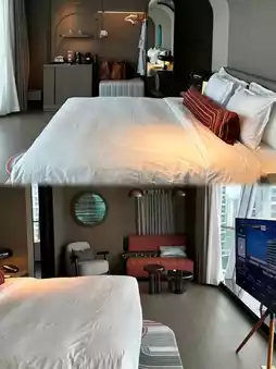 The room design is very trendy, mixing industrial style with Ningbo elements, and the bedding is so comfortable you won’t want to get out of bed!