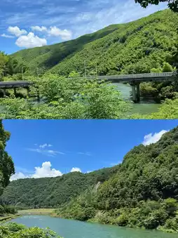 We set off for Xuancheng early on Friday, planning to experience bamboo rafting at Xijin Yedu first. Checking the weather forecast before departure, we expected rain in Ningguo and hoped to encounter misty scenery. Instead, we were greeted by blazing sunshine. Nonetheless, the nearly three-and-a-half-hour drive through mountain roads was exhilarating. Passing by Qinglongwan Reservoir, we couldn’t resist stopping to admire the stunning lake and mountain views—every snapshot looked like a postcard.