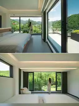 → Room details for perfectionists: Panoramic floor-to-ceiling windows + sleep-inducing mattresses, and enjoy the view of swaying bamboo while soaking in the tub.