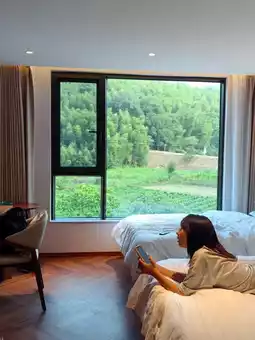 Spacious and new! The public area boasts a minimalist white design paired with the scenic mountains of Southern Anhui, exuding a sense of sophistication.