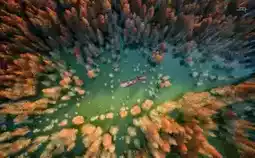 The viewing platform is the entrance to panoramic mode; the center of the water surface triggers mirror mode; forest trails open detailed exploration mode.