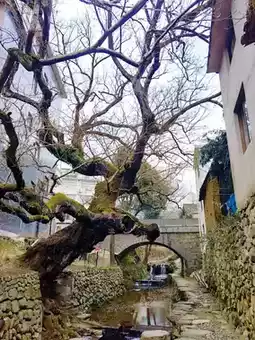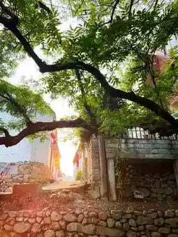 A clear stream runs through the entire village. The stream rushes down from the mountains, singing and laughing all the way. The sound of the gurgling water, like the beautiful notes played by nature, echoes in the valley. The stream hits the rocks, splashing white water, adding a lively atmosphere to this quiet village. Walking along the stream, the stone road under your feet is wet, and occasionally you can see small fish swimming freely in the water. They sometimes shuttle among the water plants, and sometimes jump out of the water, bringing circles of ripples to the calm water surface.
