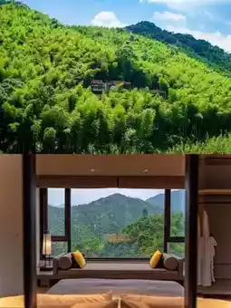 ⛰ Ninghai, Zhejiang, the place where Xu Xiake's travels open. Anlan Hotel, architecturally distributed in three mountains and forests, private and quiet; separate terrace, each household private soup, Nanxi soup spring water into the house, sleep to see the cloud valley bamboo sea.