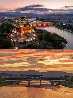 Nanmen Xia Ke Ju - Ninghai 🌉 a cultural theme hotel beside the Xingning Bridge, with 96 new Chinese-style guest rooms, each with a landscape tea table, where guests can enjoy tea while appreciating the beautiful night view of Yangxi 🌊
