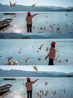 Sichuan Lover Beach, there are more seagulls ~ There are also colorful pig trough boats