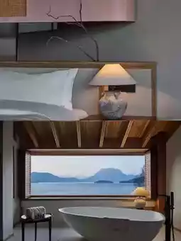 The hotel has only 10 rooms but offers 8 different room types, ranging from 35 to 78 square meters. Rooms are equipped with King Koil bedding, making you feel like you're being gently lifted by clouds; French imported real-flame fireplaces bring cozy warmth on cold nights; MARSHALL sound systems ensure every melody precisely touches your soul. The bathroom amenities are Acqua di Parma, and MUJI daily necessities show thoughtful attention to detail, making every moment here extremely pleasant. In the morning, sunlight gently streams through the 270° panoramic windows onto your face, waking you up surrounded by the lake and mountain scenery, starting a beautiful day; at night, fall asleep accompanied by Lugu Lake's gentle evening ambiance and starry sky, leaving all fatigue and worries far behind.