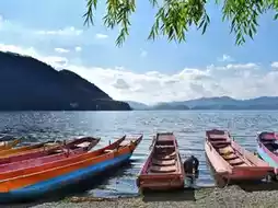 The lake itself is pure magic: sapphire-blue waters, misty mountains, and tiny islands connected by wooden boats called pig-trough boats 🚣. Whether you’re cycling along the lakeshore, watching the sunrise paint the water gold 🌅, or joining a bonfire party under the stars ✨🔥, Lugu Lake offers peace, beauty, and a touch of mystery.