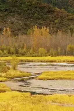 ▫️ Goddess Gemu Mountain drapes itself in golden veils, with maple leaves, ginkgo, and reed marshes weaving an oil painting; every step treads on a melody of colors.
