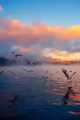 The sky shifts from orange-red to pink-purple, the water glimmers with golden light, like fireworks that never fade.