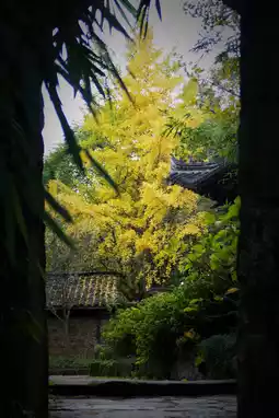 3️⃣ Bamboo shadows peeking at the ancient tree: Shoot through the bamboo gaps in the courtyard to capture the golden tree crown behind the horse-head wall, creating a rich layered effect.