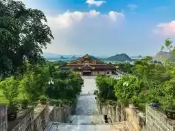The characteristic of this place is that you can see the karst topography unique to Ninh Binh and the architectural style of the temple in harmony.