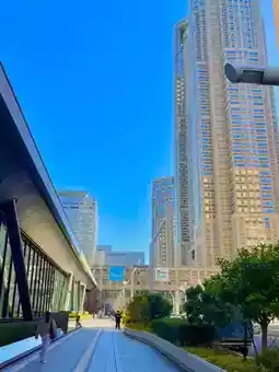 • Right next door! A great spot to take a break while strolling among the skyscrapers