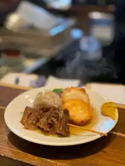 What makes this shop stand out is its rich selection of over twenty types of oden. Unlike typical places, its broth has a darker color and features a uniquely sweet and salty Japanese flavor profile. Though the taste is strong, it leaves a lasting impression. Must-try items include the beef tendon and the signature tofu rice: the beef tendon is tender and flavorful, soaked in a rich sauce, while the tofu rice can be enhanced by asking the staff to add oden broth, instantly transforming it into a sweet, warming soup rice—a true delight for the taste buds.