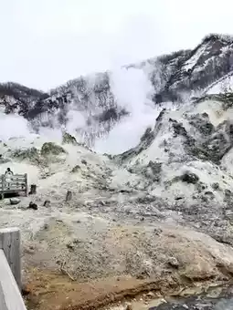 Hell Valley🌋💨is a natural tourist attraction in Hokkaido🇯🇵 that you shouldn't miss🌋💨and the atmosphere is like being in a fantasy world. And there is a unique sulfur smell 🌫️😮